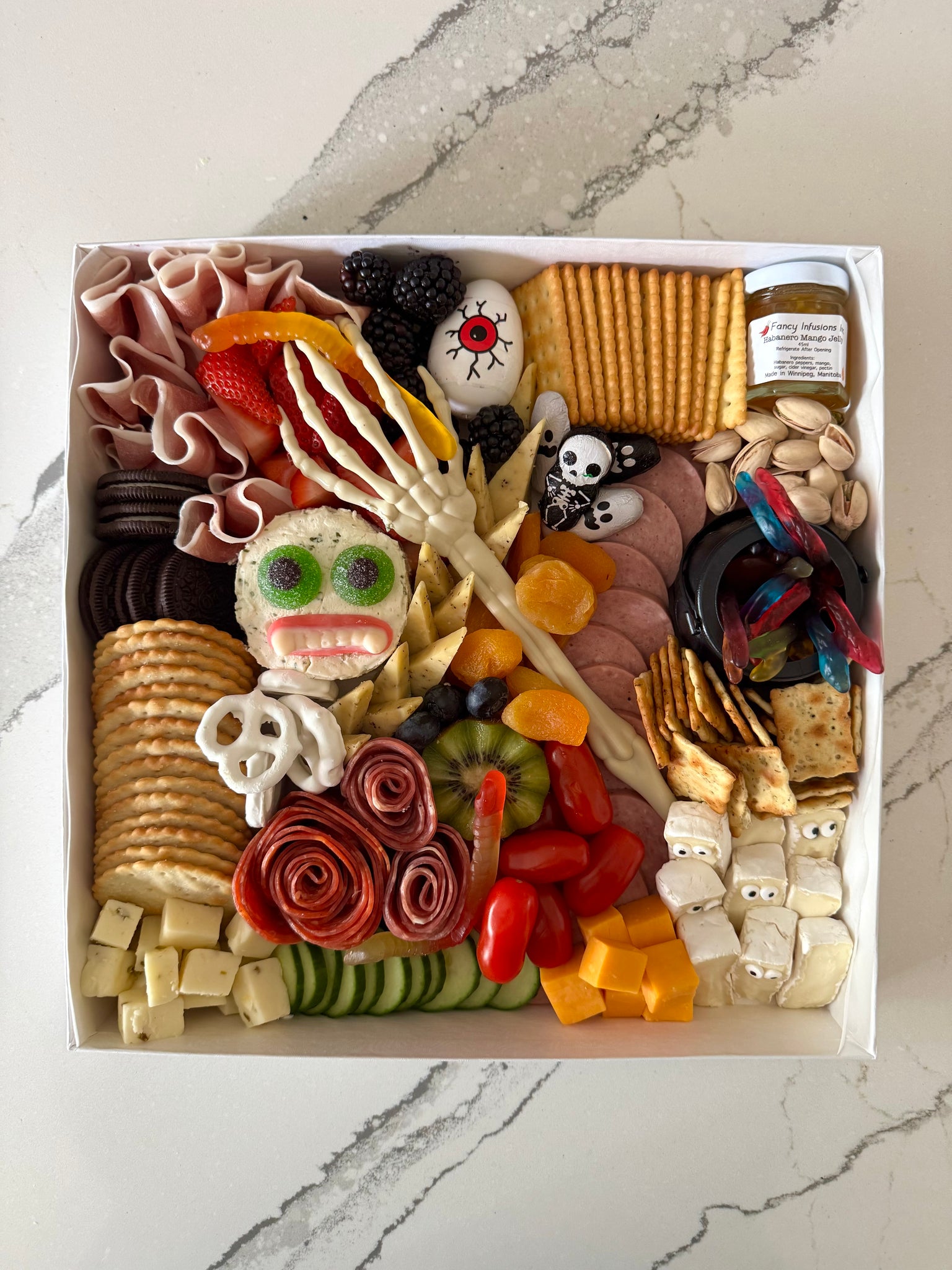 Celebrate spooky season with your witches and goblins by indulging in the creepy Boo Box! Perfect for snacking on when you’re handing out candy, or while you’re watching your fav scary movie.